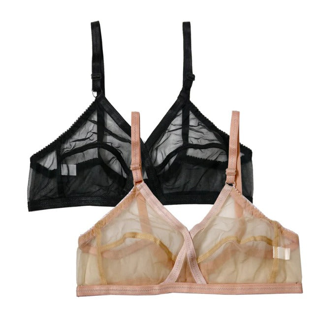 Pack of 2 Non-Padded & Non-Wired Full Net Transparent Cotton Bras