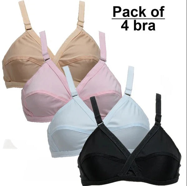Experience ultimate comfort and timeless style with our Pack of 4 Classy Cotton Non-Padded Bras, designed for everyday wear. Crafted for women seeking both functionality and elegance, these bras are a wardrobe essential.