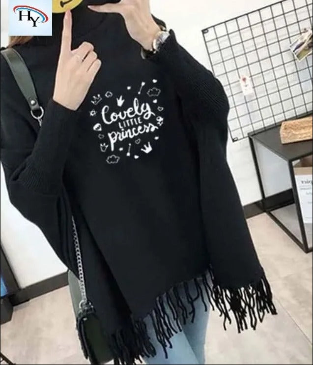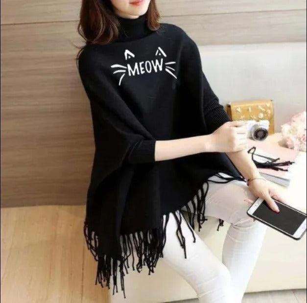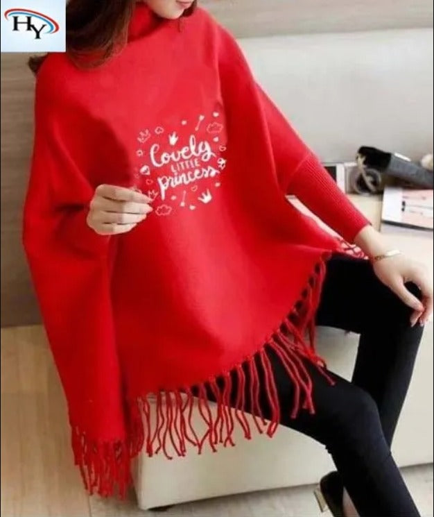 Printed Winter Fleece Poncho for Girls and Women - Cotton, High-Neck